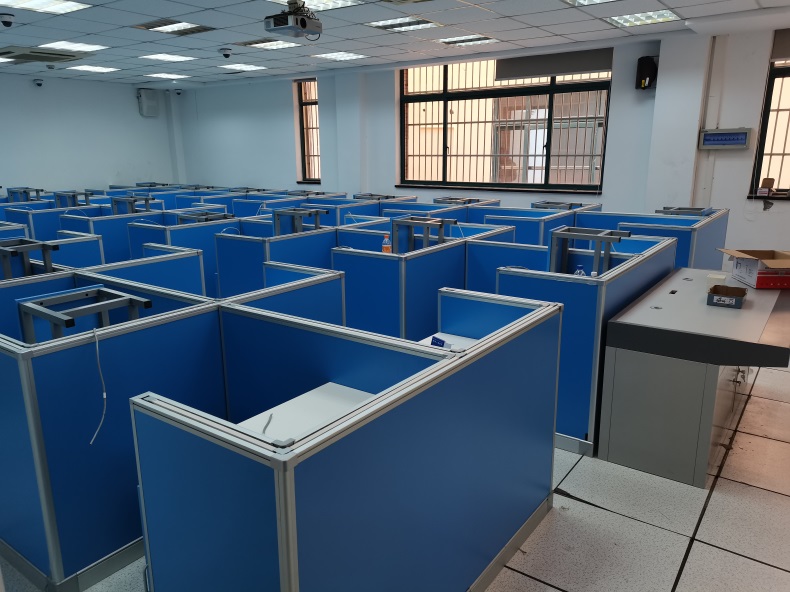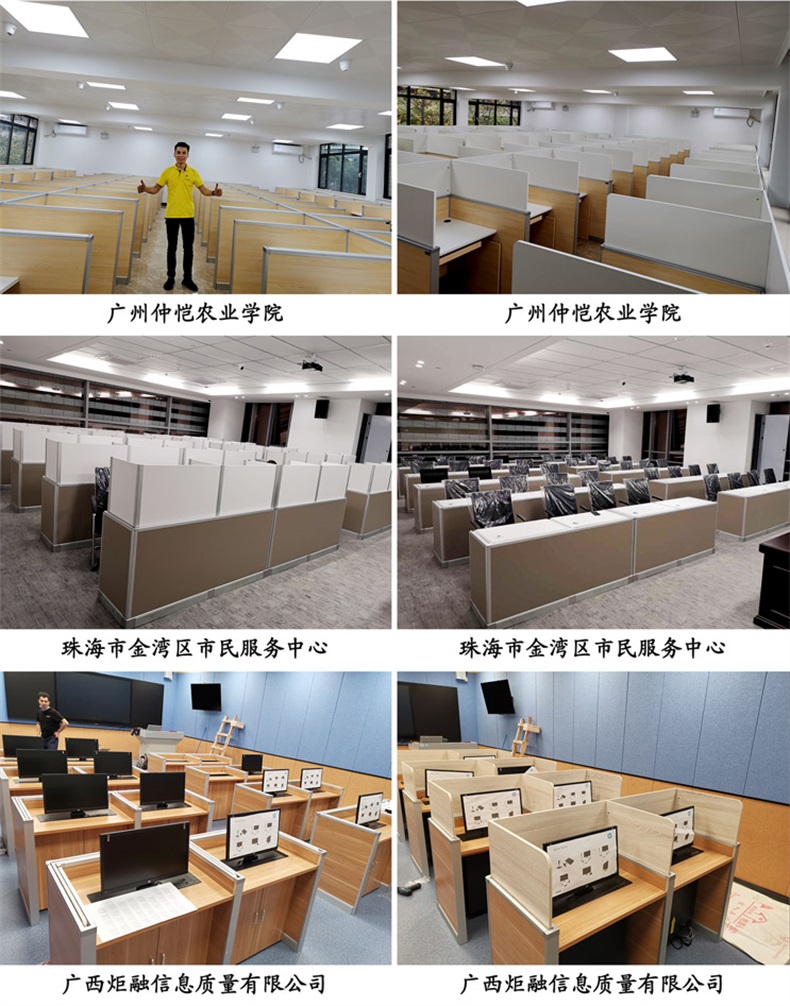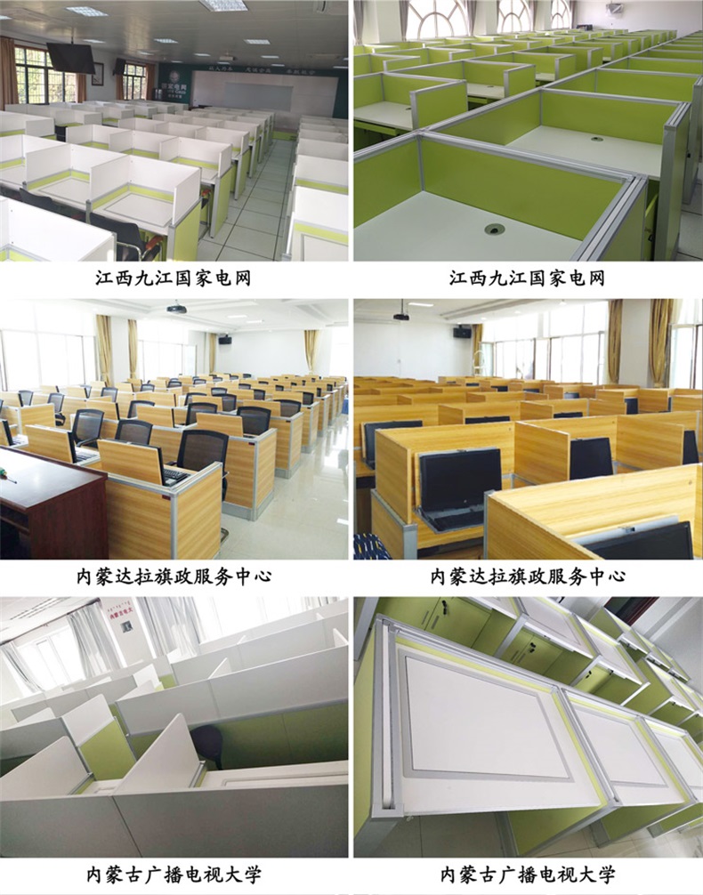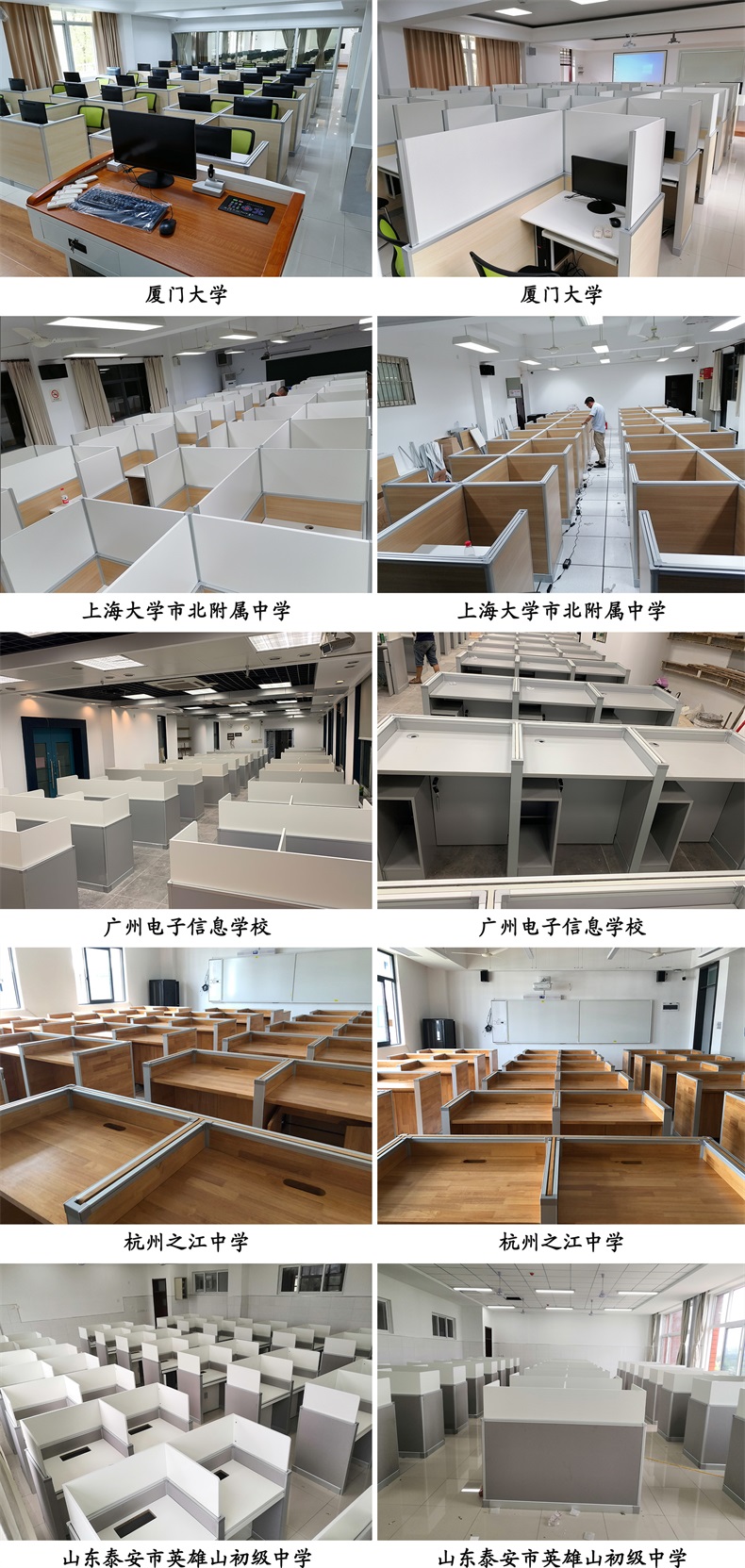 根據(jù)上海科技管理學校對測試實驗實訓室和編碼實訓室使用需求,在產(chǎn)品設計方面,電腦桌的左、右、前三面帶升降屏風擋板,用于隔斷相鄰考生視線。當屏風升起時,可以用作教室計算機標準化考試使用,當屏風降下時,可以用于學生上課使用。實現(xiàn)了一室多用、考學合一。
