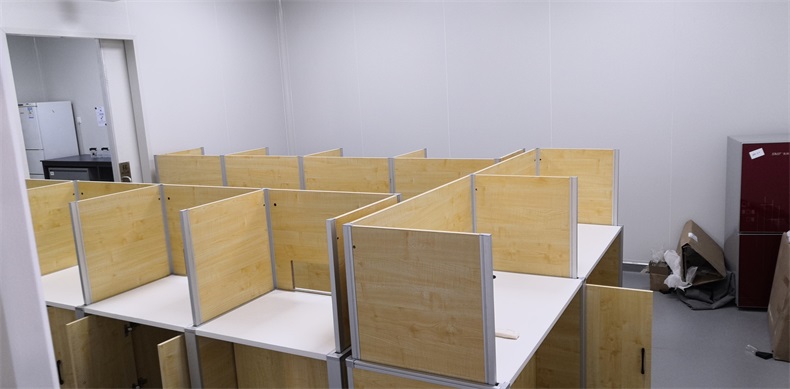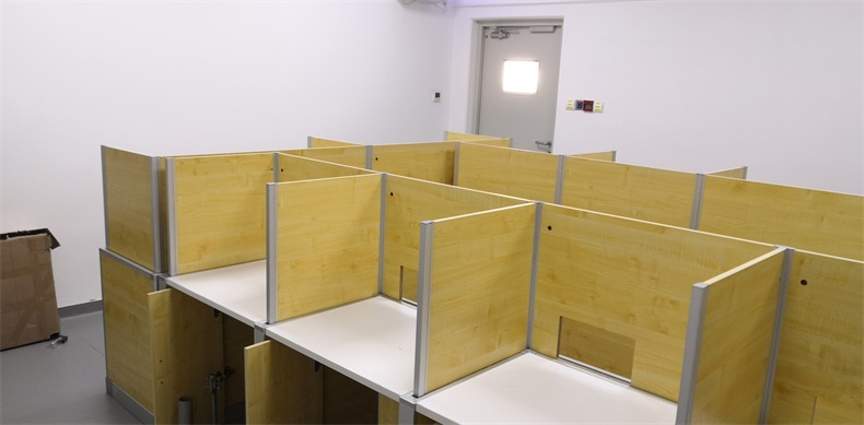 根據(jù)山東青島雀巢有限公司對咖啡品嘗的使用需求,在產(chǎn)品設(shè)計方面,咖啡品嘗桌的左、右、前三面帶升降屏風(fēng)擋板,用于隔斷相鄰品嘗師視線。當(dāng)屏風(fēng)升起時,品嘗師可以單獨品嘗,不受其他品嘗師的干擾,更能客觀給出自己的分?jǐn)?shù);當(dāng)屏風(fēng)降下時,各個品嘗師可以相互討論,研究,調(diào)試更可口的咖啡。實現(xiàn)了一室多用。