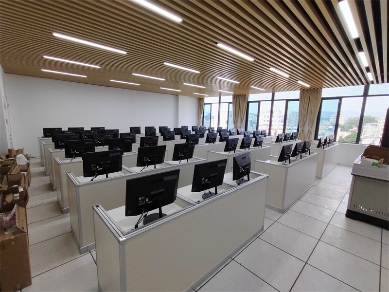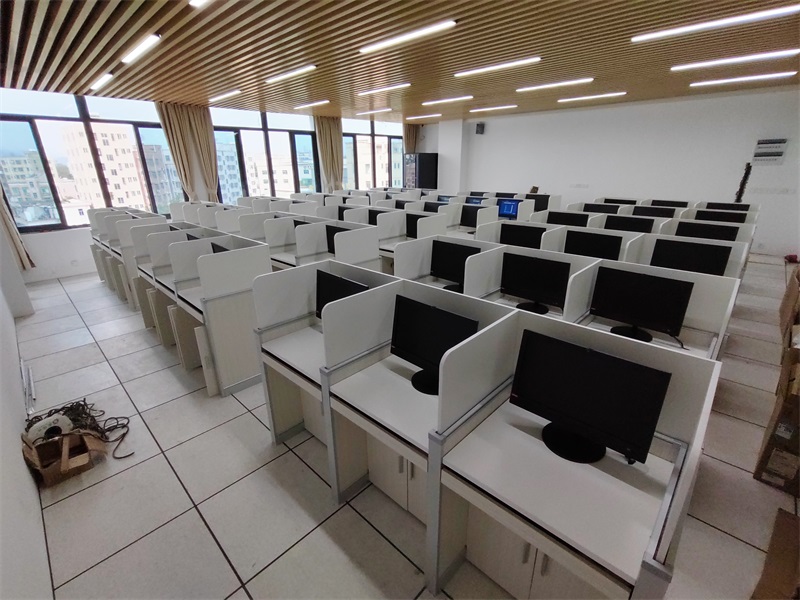 根據(jù)深圳市龍華區(qū)行知中學(xué)對(duì)計(jì)算機(jī)室的要求,方方智能為該計(jì)算機(jī)室設(shè)計(jì)了屏風(fēng)可以升降的三人位屏風(fēng)桌。該屏風(fēng)桌采用方方第一代升降屏風(fēng)桌,基礎(chǔ)高度840MM,升起高度1160MM,起到良好的隔斷效果。