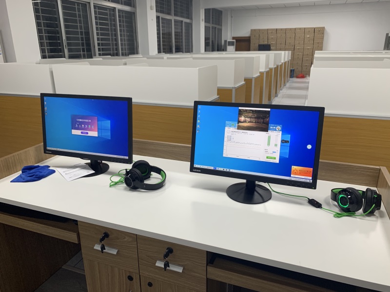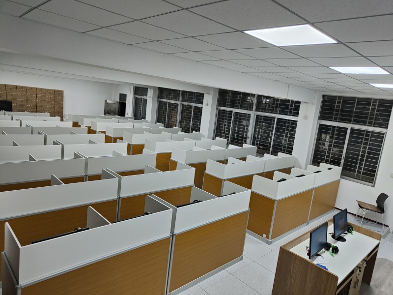 根據梅州市興寧中學對計算機室的使用需求,方方智能對該計算機室進行了升級改造,設計了一套可以升降的智能升降屏風桌,每個座位都有可升降的屏風,考試時屏風升起后可有效的隔斷相鄰人的正常視線,防噪音效果,可達到互不干擾的作用,當屏風降下時,可以用于學生日常上課使用。實現了一室多用、考學合一。