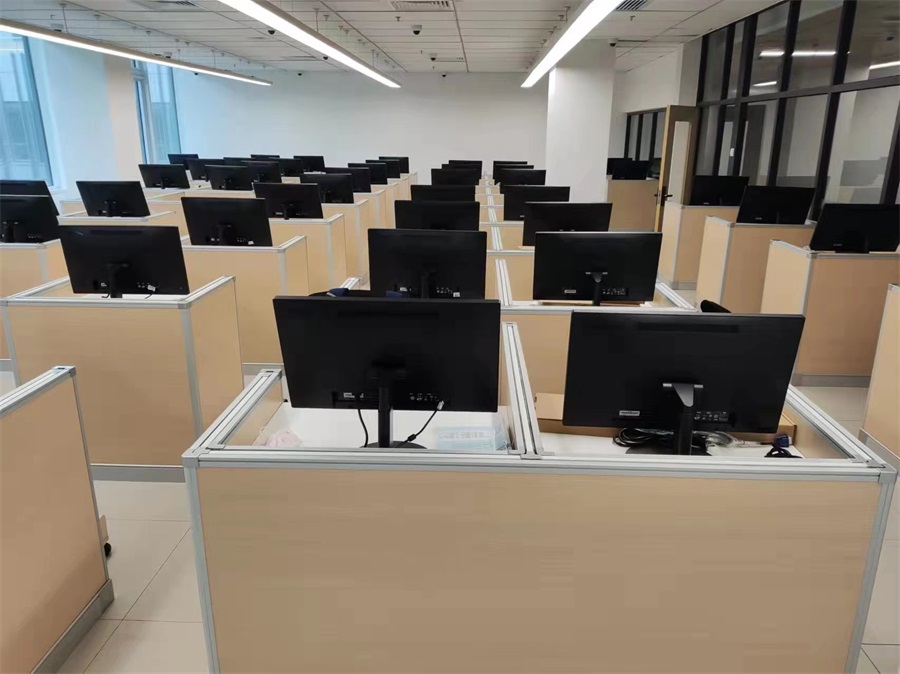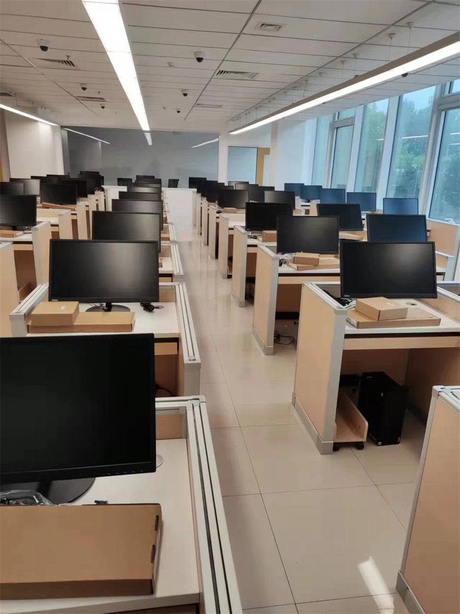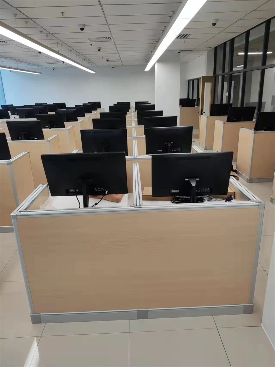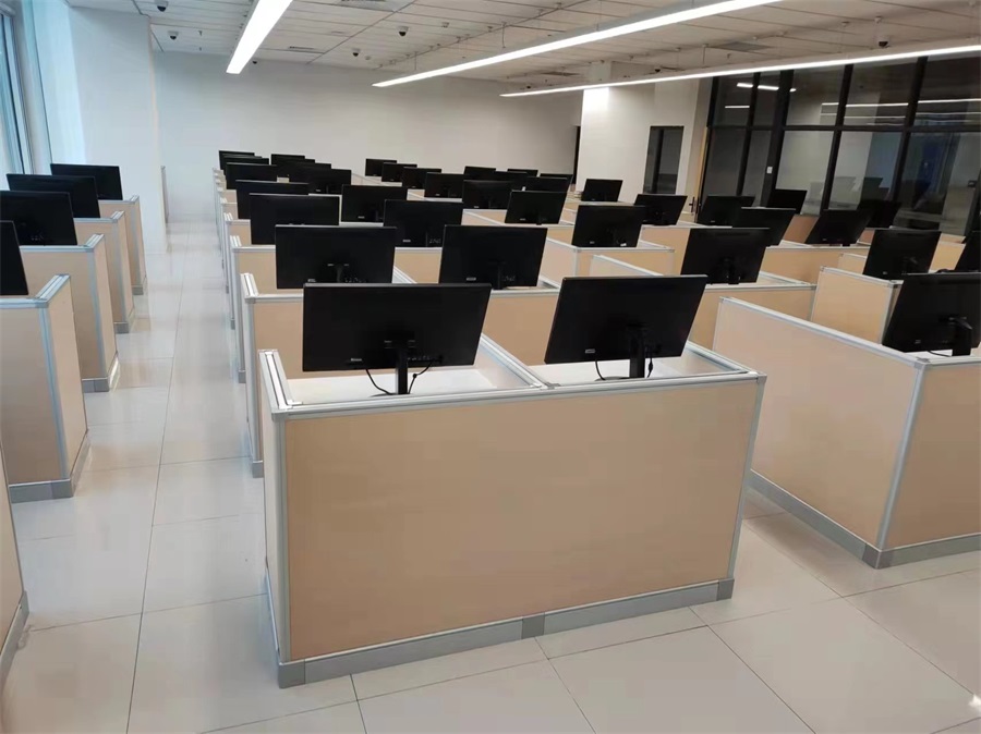 根據北京清華附中外籍人員子女學校對升降屏風語音教室的使用需求,方方智能對該教室設計了一套可以升降的智能升降屏風桌,每個座位都有可升降的屏風,考試時屏風升起后可有效的隔斷相鄰人的正常視線,防噪音效果,可達到互不干擾的作用,當屏風降下時,可以用于學生日常上課使用。實現了一室多用、考學合一。