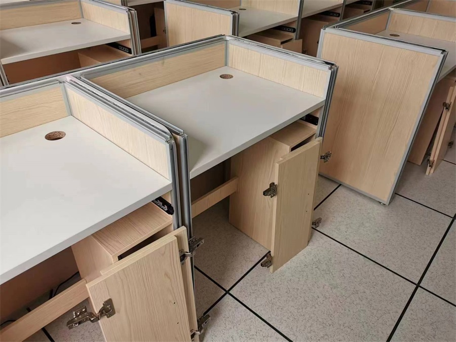 根據深圳市教育科學研究院實驗學校對升降屏風語音教室的使用需求,方方智能對該語音室設計了一套可以升降的智能升降屏風桌,每個座位都有可升降的屏風,考試時屏風升起后可有效的隔斷相鄰人的正常視線,防噪音效果,可達到互不干擾的作用,當屏風降下時,可以用于學生日常上課使用。實現了一室多用、考學合一。