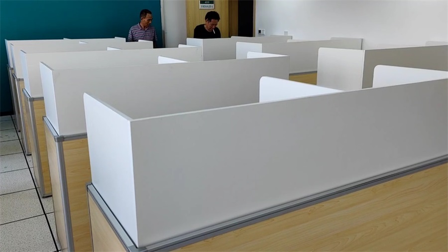 根據國網津市市供電公司的使用需求,方方智能對升降屏風多功能培訓室設計了一套可以升降的智能升降屏風桌,每個座位都有可升降的屏風,考試時屏風升起后可有效的隔斷相鄰人的正常視線,防噪音效果,可達到互不干擾的作用,當屏風降下時,可以用于學生日常上課使用。實現了一室多用、考學合一。