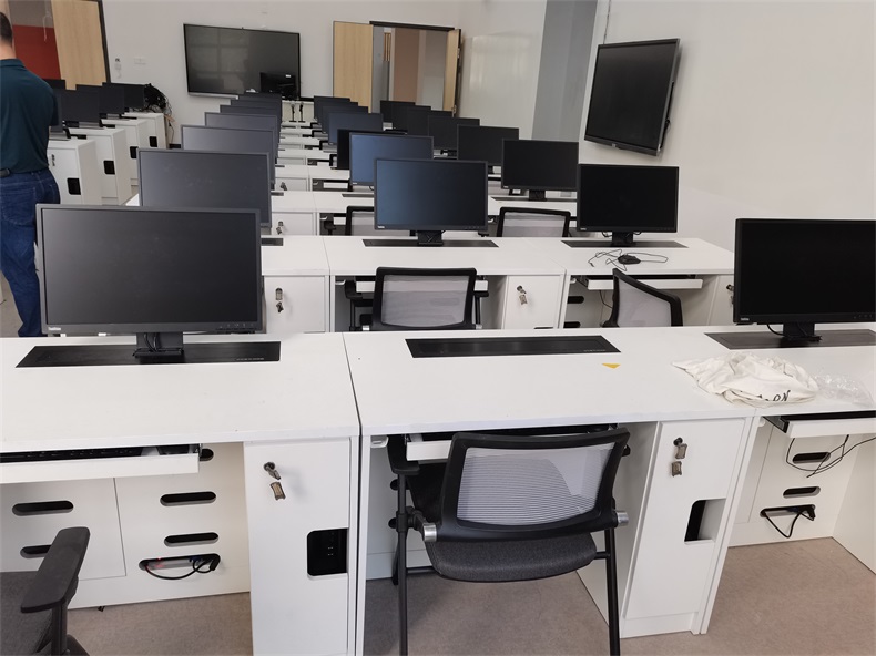 根據深圳職業技術學院對多媒體教室使用要求,方方智能為該學校設計了每個桌子桌面裝有液晶屏升降器,需要使用顯示屏時,隱藏在桌子內部的液晶升降器把顯示屏從桌子下面升出桌子上面;當不使用顯示屏時,液晶屏升降器自動下降,顯示屏隱藏在桌子內部,起到防盜、防塵作用,保持桌子表面的平整和美觀,實現了一室多用。 |
