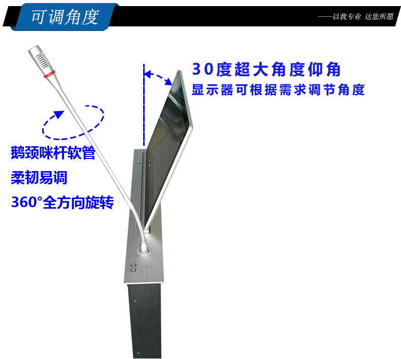 仰角角度: 0-30°,完全符合人體工程學原理,又不遮擋視線和人臉